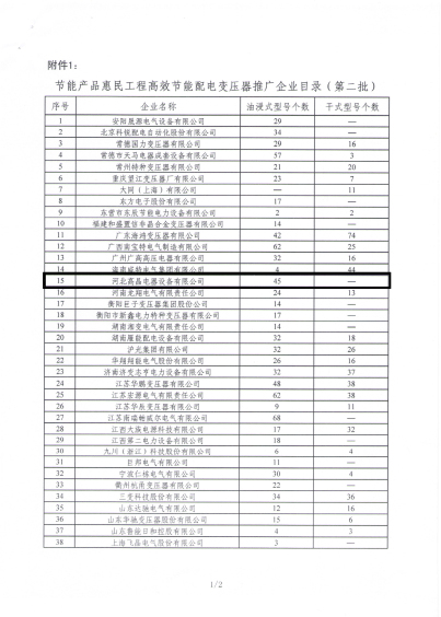 在公布的目錄中,河北高晶電器設(shè)備有限公司有45個(gè)油浸式型號(hào)入圍,這說(shuō)明我公司自主研發(fā)的能效產(chǎn)品得到了國(guó)家政府部門(mén)的肯定,彰顯了我公司產(chǎn)品質(zhì)量和技術(shù)實(shí)力。