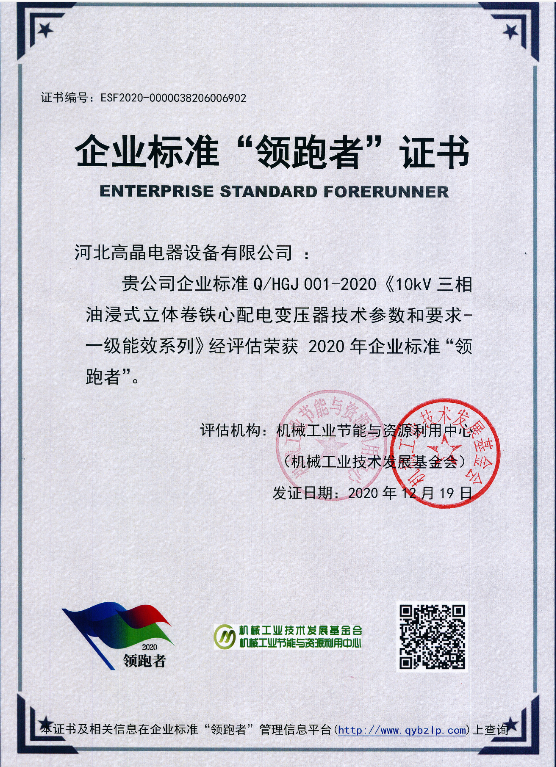 企業(yè)標(biāo)準(zhǔn)領(lǐng)跑者證書(shū)